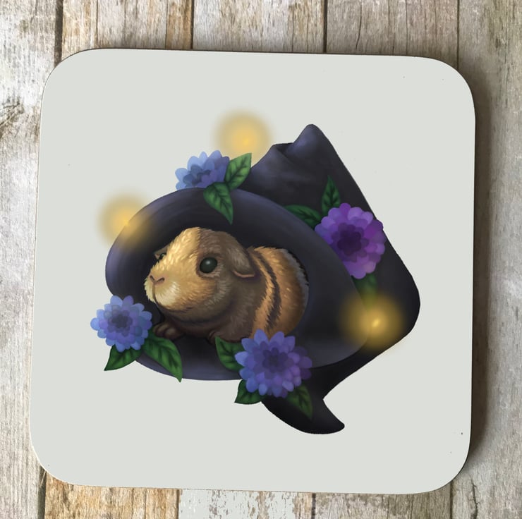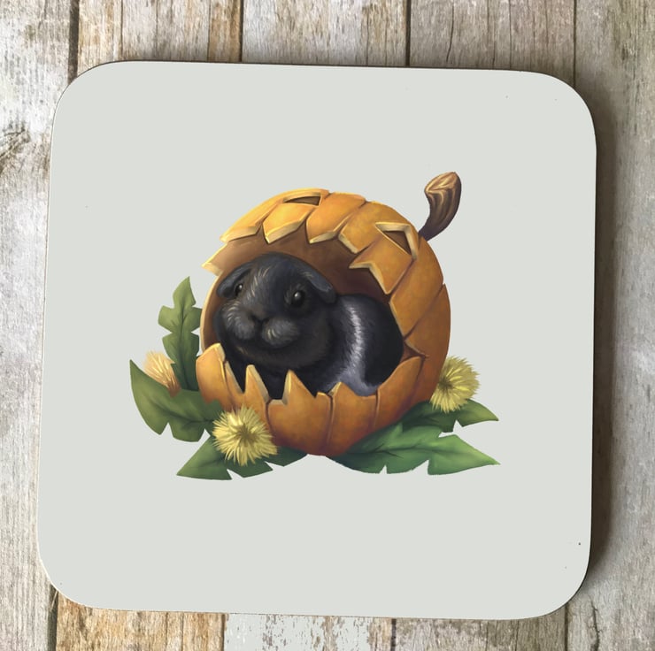 A spooky guinea pig square coaster. Unisub Hardboard Coaster, 9cm square.