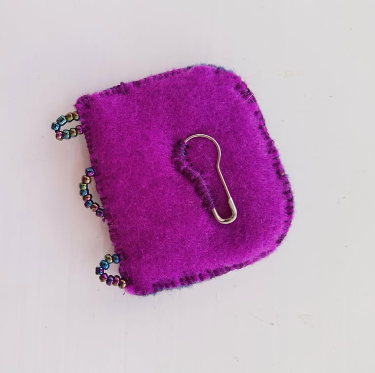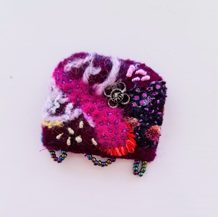 This brooch is made from using needle felting techniques and added textiles approx 5 cm x 5cm with little pin to attach to your clothing. it is one of a series of shoreline brooches.