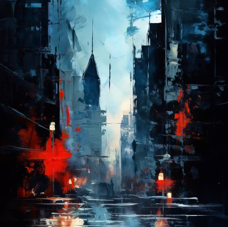 Immerse yourself in the captivating allure of the city after dark with this mesmerizing 7"x5" oil painting print. This urban artwork brilliantly captures the essence of a bustling metropolis as night falls, with city lights casting a mysterious glow on the streets below. The dark cityscape comes alive with a sense of energy and intrigue, making it a powerful statement piece for any modern interior.