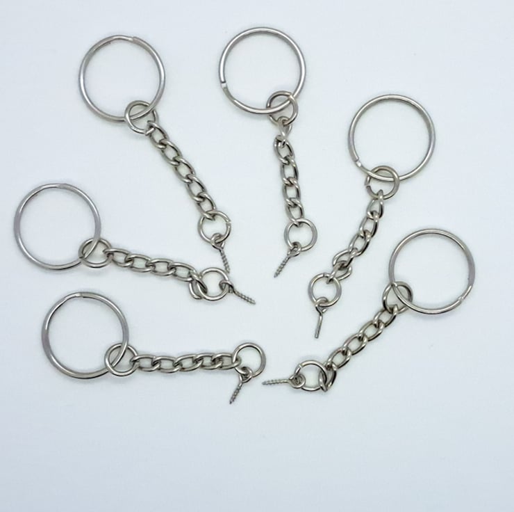 The split ring measures 20mm in diameter, the chain with jump rings(excluding eye pin) is approx 40mm.