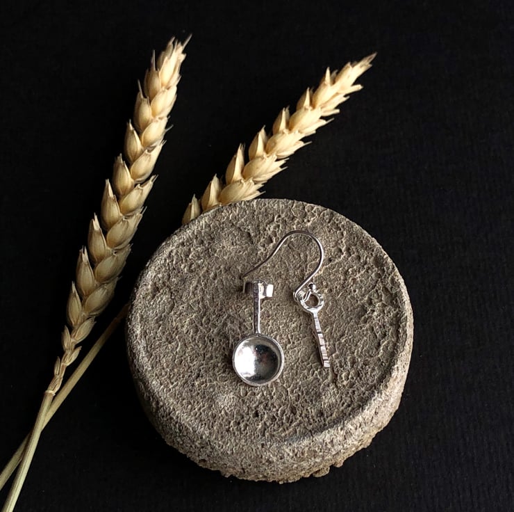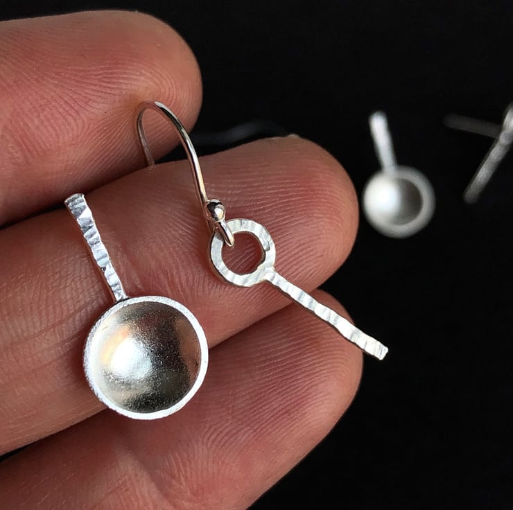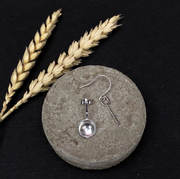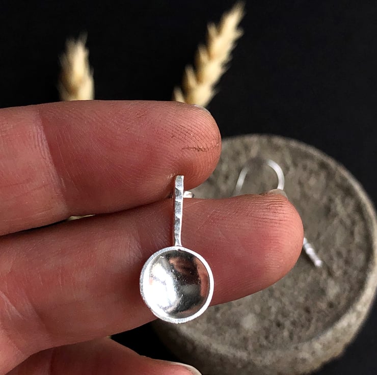 My spoon earrings and abstract spoon earrings are all inspired by my collection of spoons and some of my larger work. These spoon earrings are cast from a master created using sheet and wire, they are then hand finished and textured.