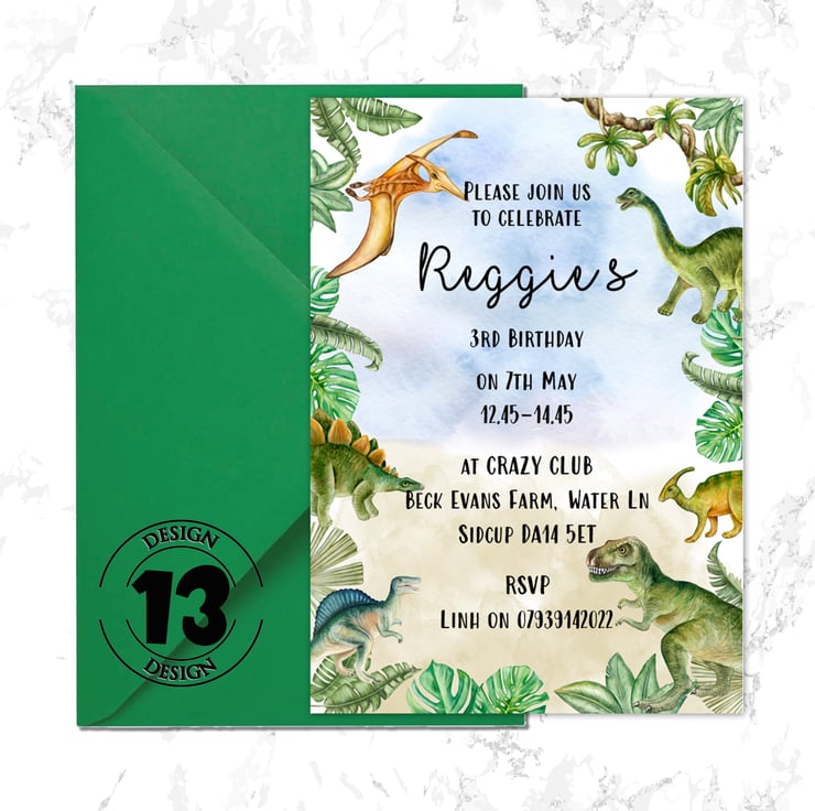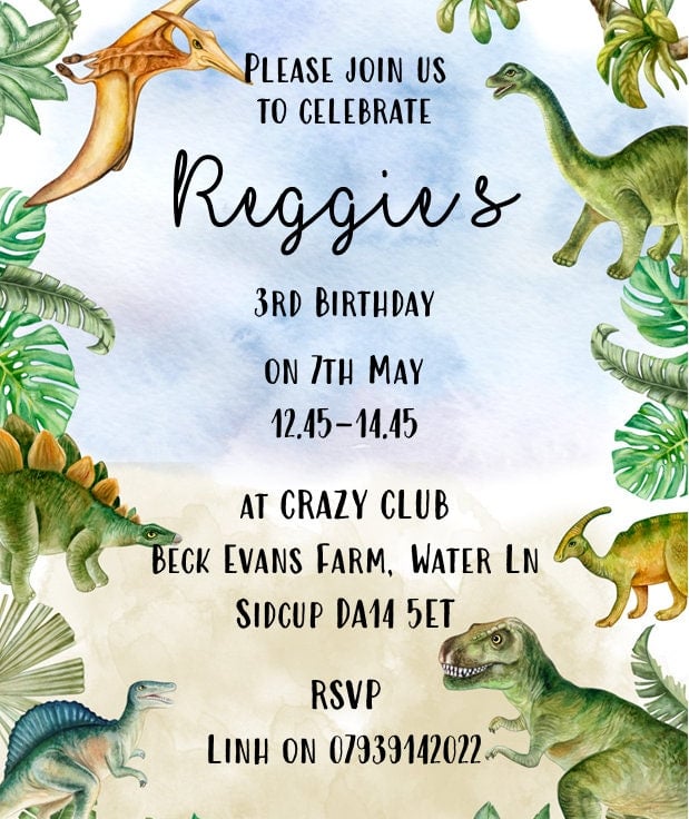 BOYS OR GIRLS DINOSAUR BIRTHDAY INVITATIONS