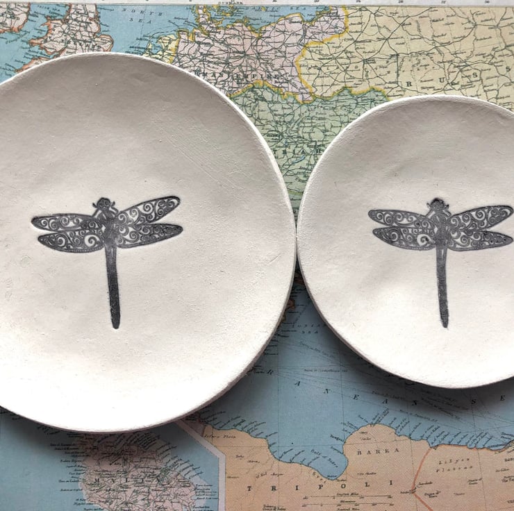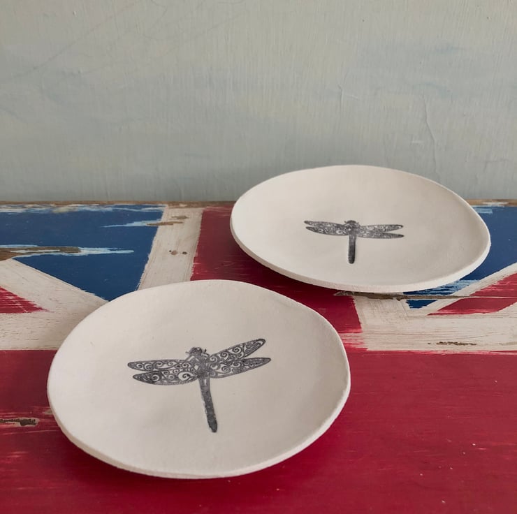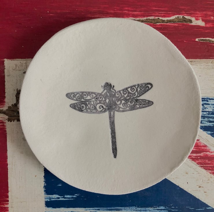 Beautiful handmade unique decorative mini dish, using a hand stamped dragonfly for a simple finish. Ideal to add to the Lucky Penny collection, to put next to your bed to use as a ring holder, to add a rustic feel to your home or to give to friends as a special gift. It can also be personalised for you too