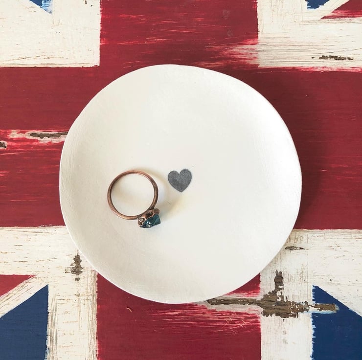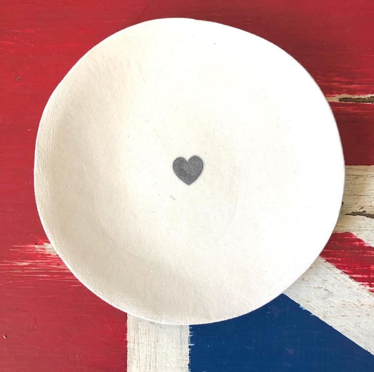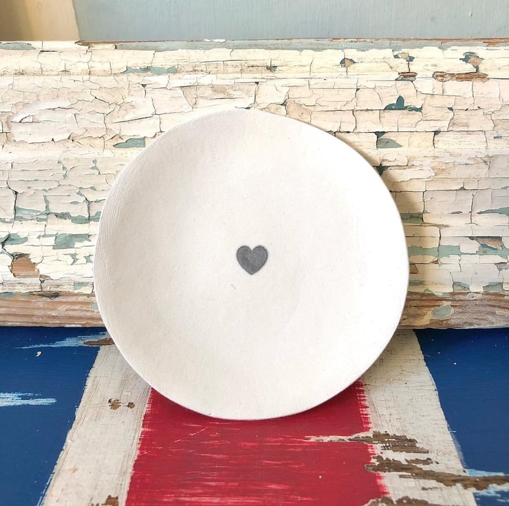 Beautiful handmade unique decorative mini dish, using a hand stamped heart for a simple finish. Ideal to add to the Lucky Penny collection, to put next to your bed to use as a ring holder, to add a rustic feel to your home or to give to friends as a special gift. It can also be personalised for you too