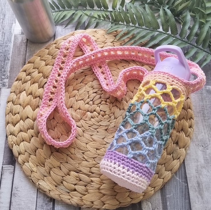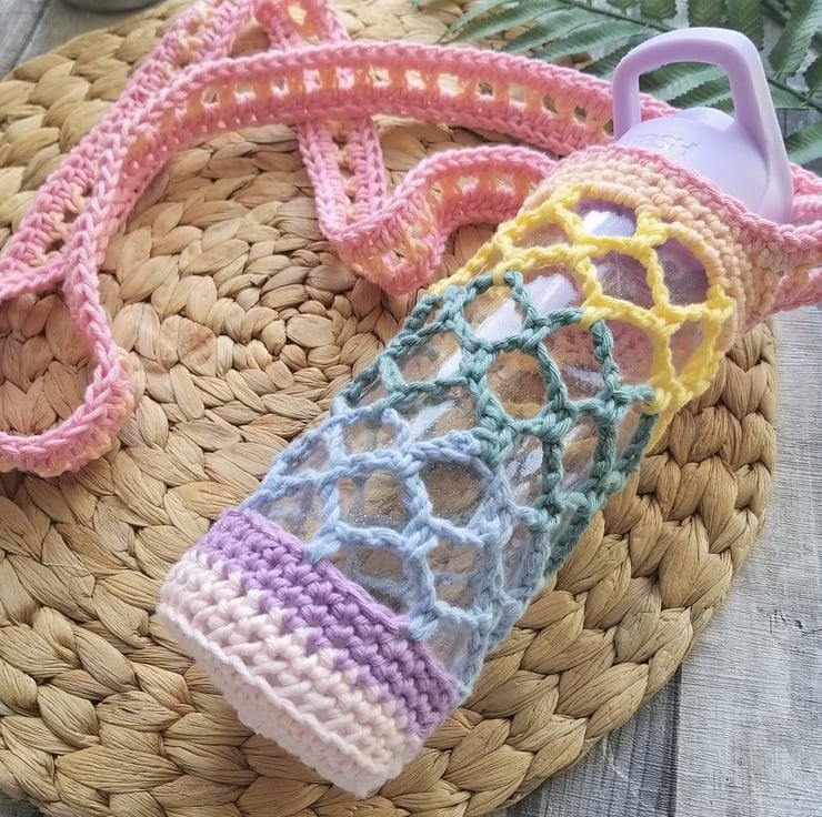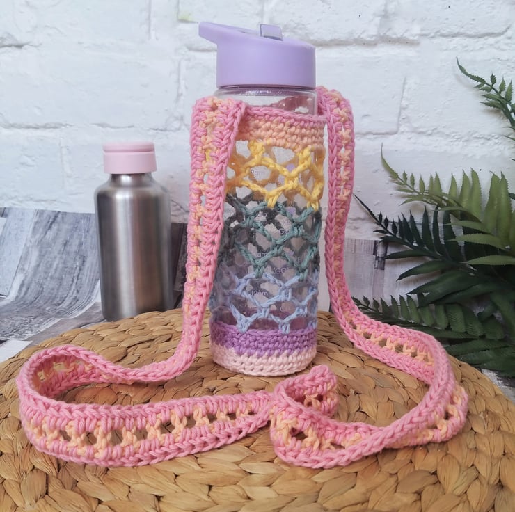 Crocheted in eco friendly cotton yarn my bottle holders are great for days out to the beach or park, taking to work and are perfect for festivals and concerts too.