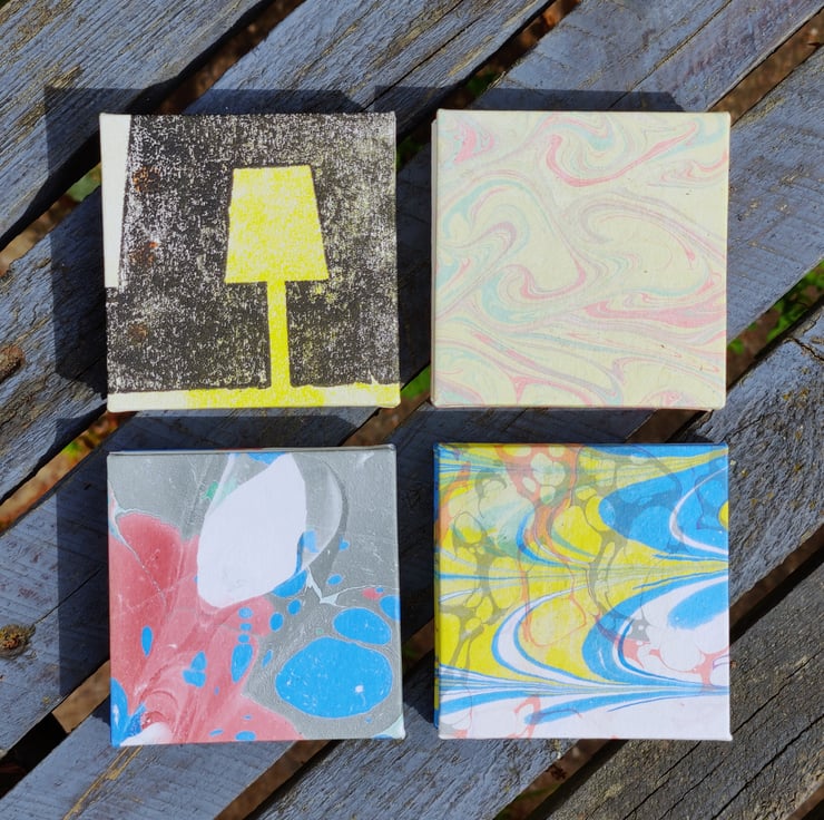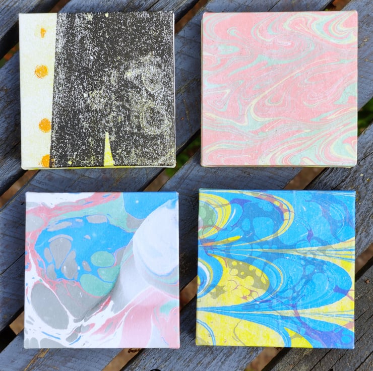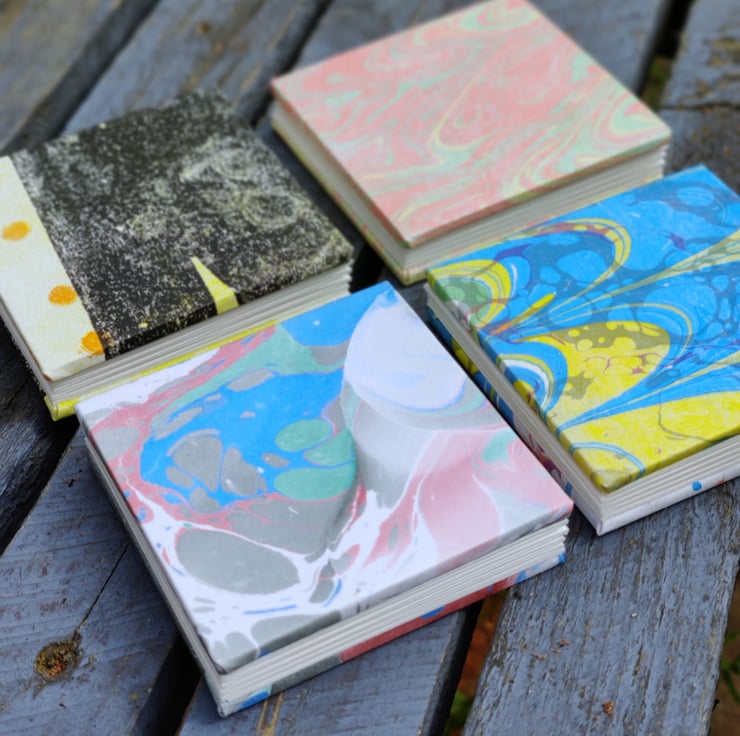 The covers are also made from prints and marbled paper seconds that might have gone in the recycling bin.
