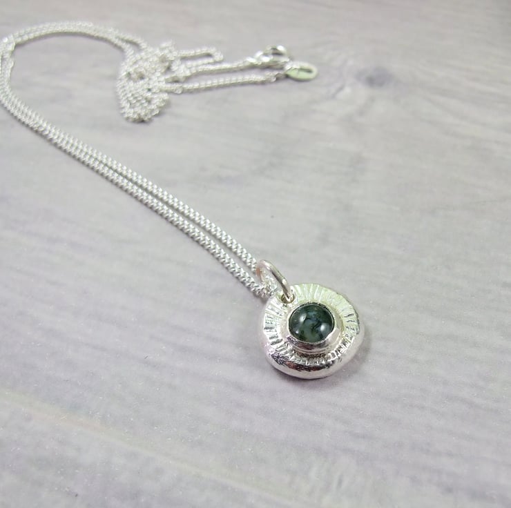 Recycled Silver Moss Agate Pendant on sterling silver chain.