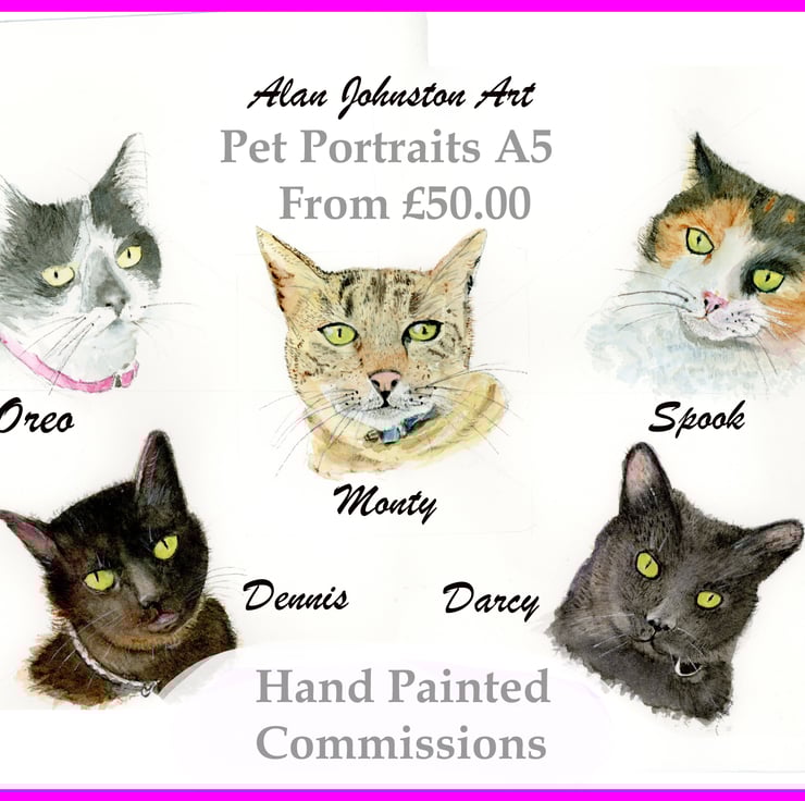 Animal portraits using professional water colour archival materials. I will create a painting of your lovely pet in water colour. Please send me a good clear photograph of your pet/s.
