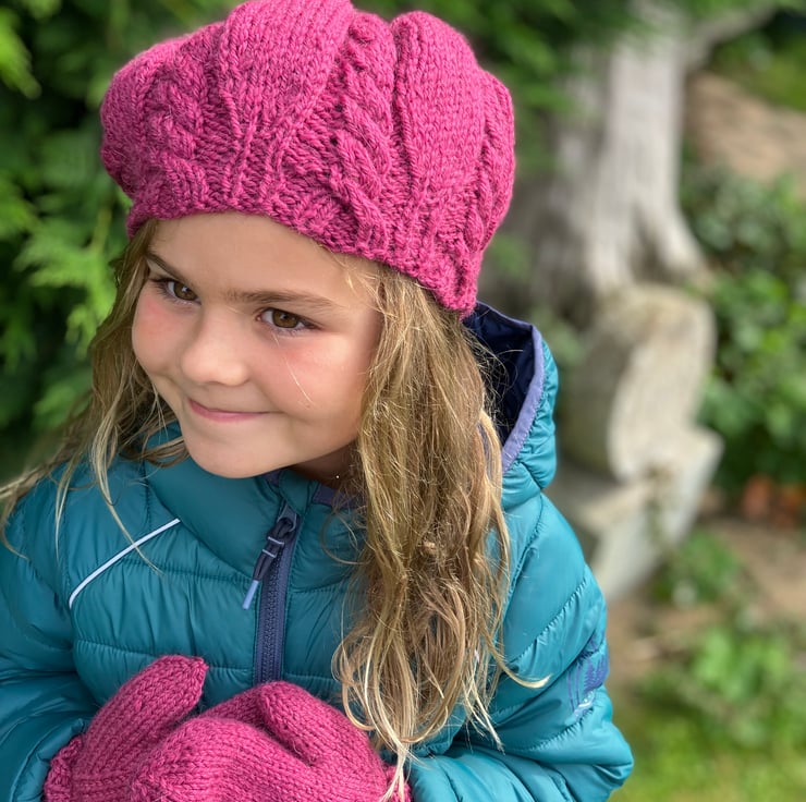 Shown here on my9 year old granddaughter Knitted in luxury alpaca and wool.