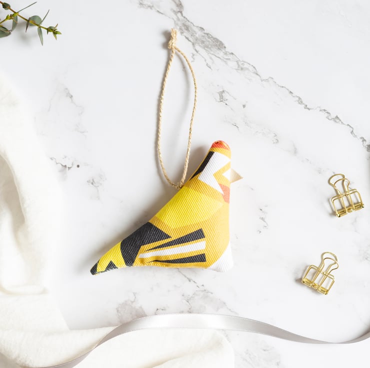 Denim Fabric bird tree decorations. To add to any dried or fresh flower arrangement/to hang on a hook or to hang on a festive tree.