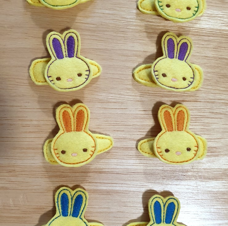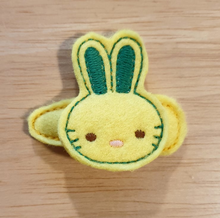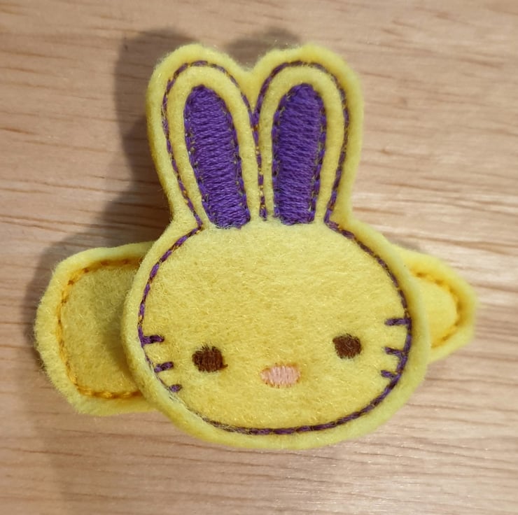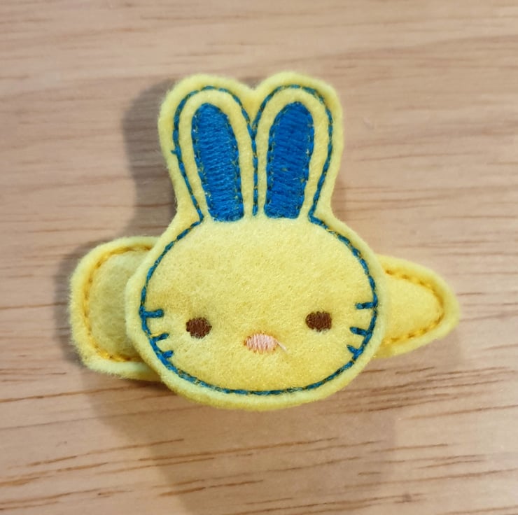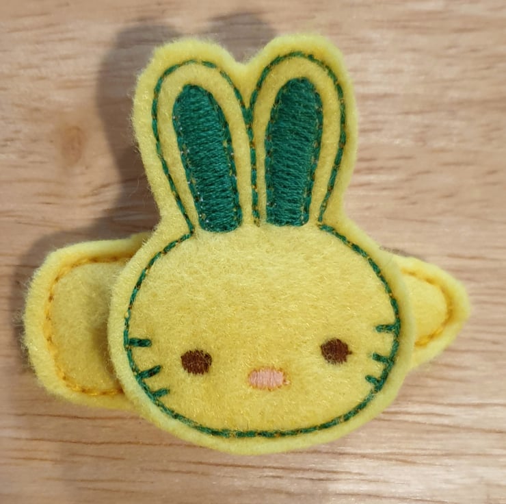 This cute bunny clip is made from felt with embroidered details.