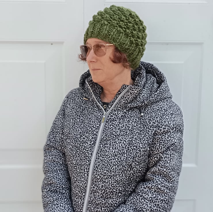 Knitted in 100% acrylic in a lovely khaki shade