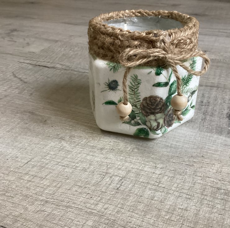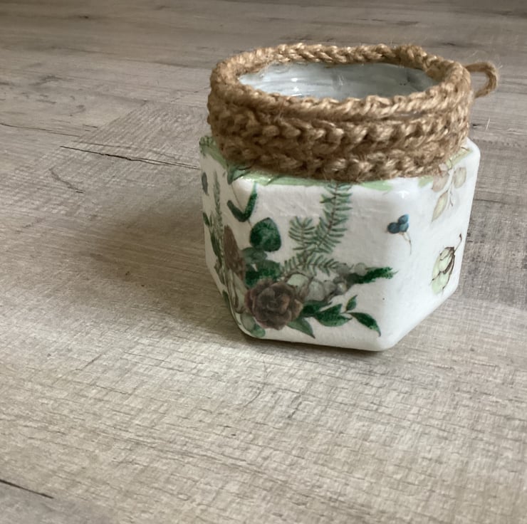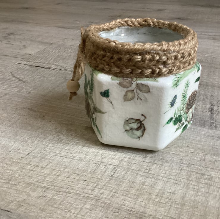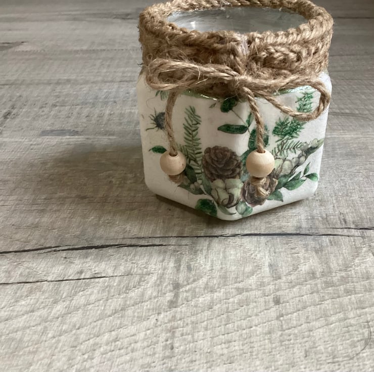 I’ve made this decoupage jar in my home studio in West Midlands.