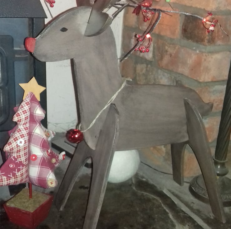 Rudolph will arrive with you complete with a Christmas Bell.