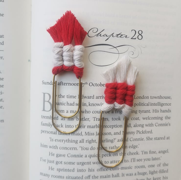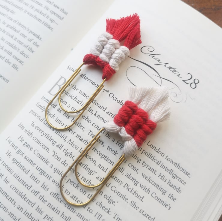 This macrame paperclip slides easily onto the pages of your book and stays put, so you never lose your place.