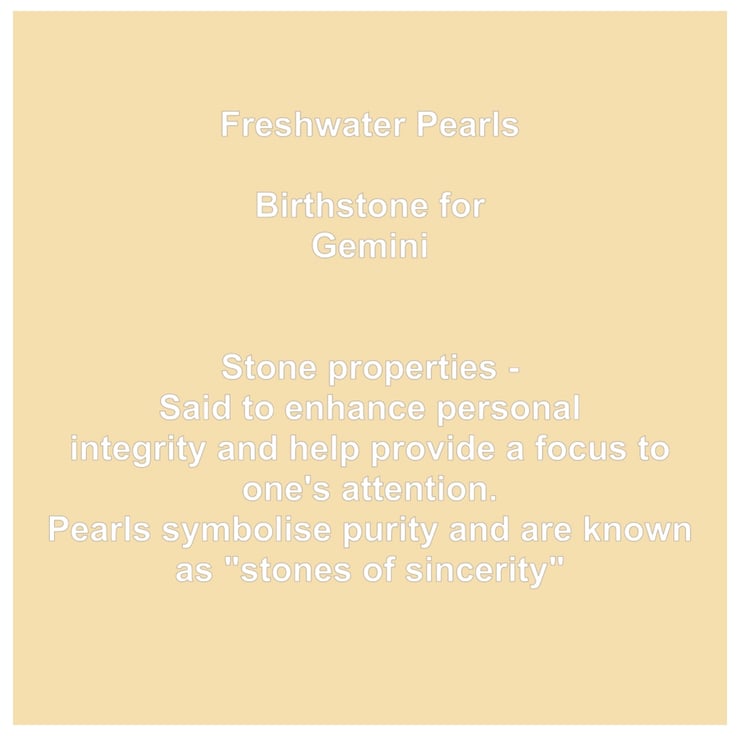Stone properties - Said to enhance personal integrity and help provide a focus for one's attention. Pearls symbolise purity and are known as stones of sincerity.