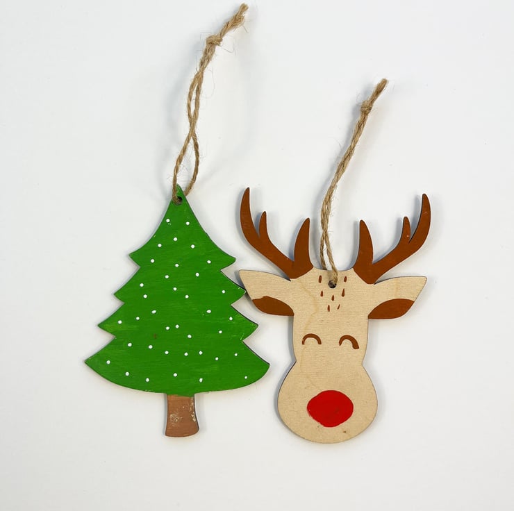 Embrace the spirit of Christmas with our handpainted Rudolph and Festive Tree ornaments, and let the joy and wonder of the season fill your children's room. Handcrafted with care, these rustic ornaments are a timeless piece that will bring warmth and cheer to your holiday celebrations.