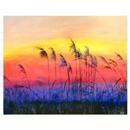 A5 Landscape blank fine art greeting card 148.5 x 210mm printed on FSC semi-gloss paper produced from an image taken from my original oil painting of a river meandering through summer meadows in Cambridgeshire