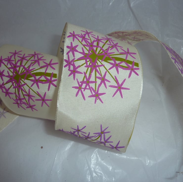 1 Metre Wire Edged Christmas Ribbon Cream Alium Flower Ribbon