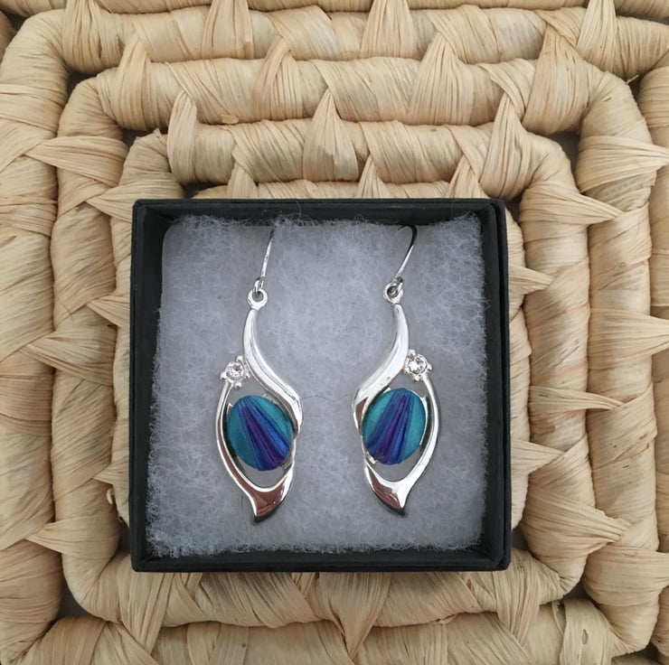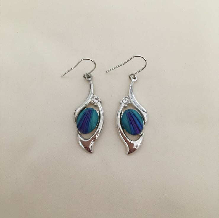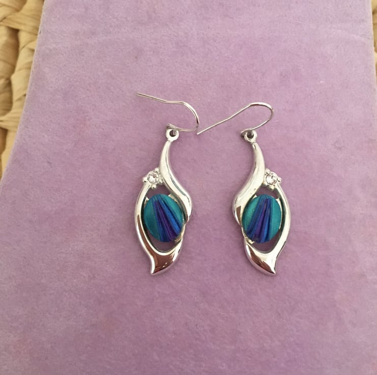 Handcrafted Earrings in Peacock colours in quality silver plated settings.