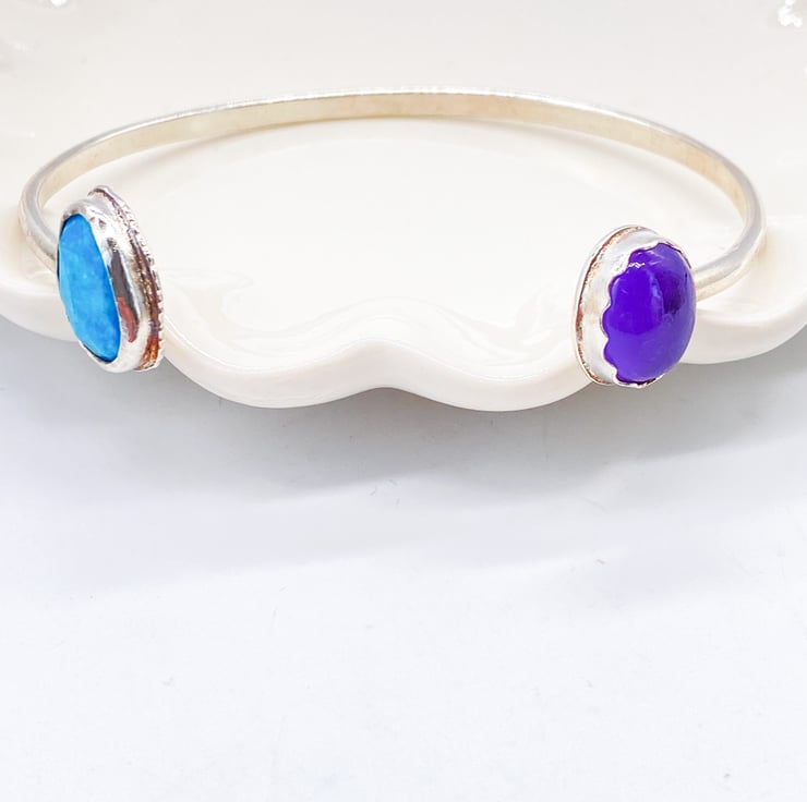 Amethyst and Turquoise sterling silver cuff, handmade in my home studio in the UK.