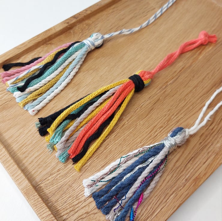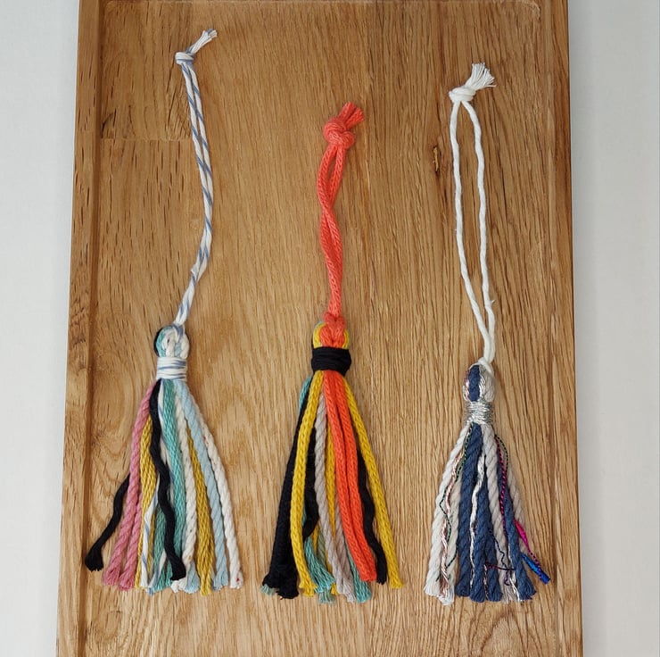These tassels are made from off cut threads used in other projects. Instead of throwing the material I make lovely tassels that can be used on gifts or bottles to add a nice finish and extra touch of colour.