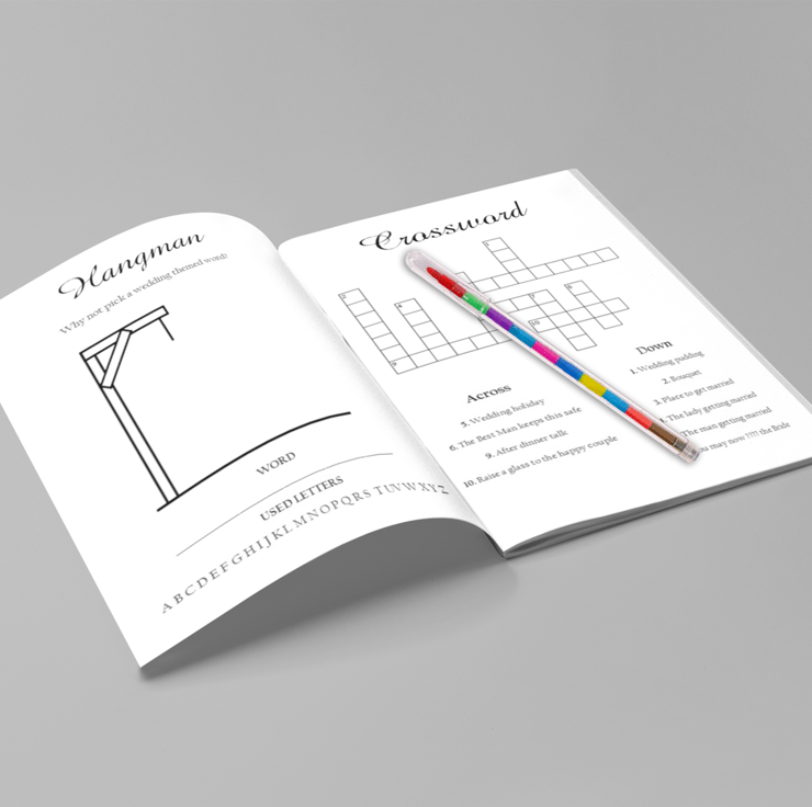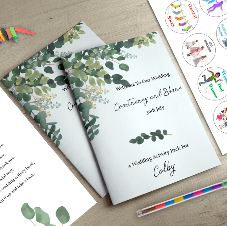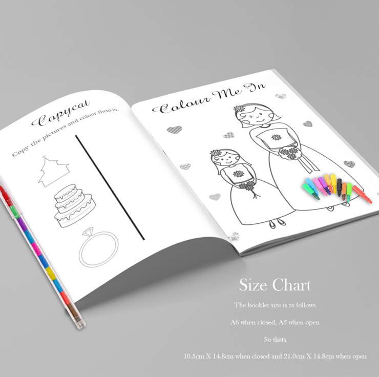 Our Personalised Children's Wedding Activity Pack, a fantastic addition to your wedding table, guaranteed to keep the young ones engaged all day long. Bid farewell to restless children and ensure a smooth, enjoyable day for everyone.