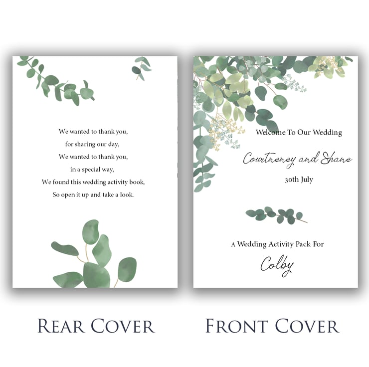 The front of each booklet can be customized with the child's name, the names of the bride & groom, and the wedding date.
