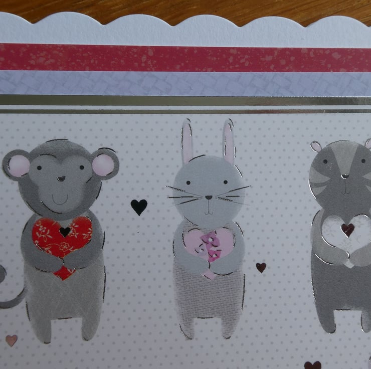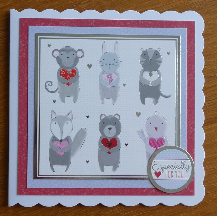 This sweet card with a variety of different animals all carrying hearts would be suitable for lots of different occasions such as birthday, get well or anniversary.