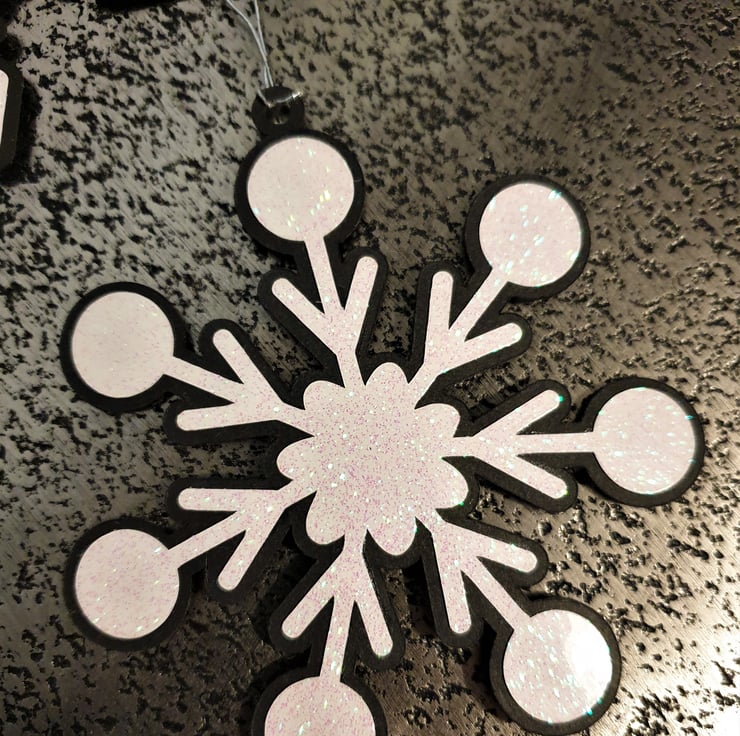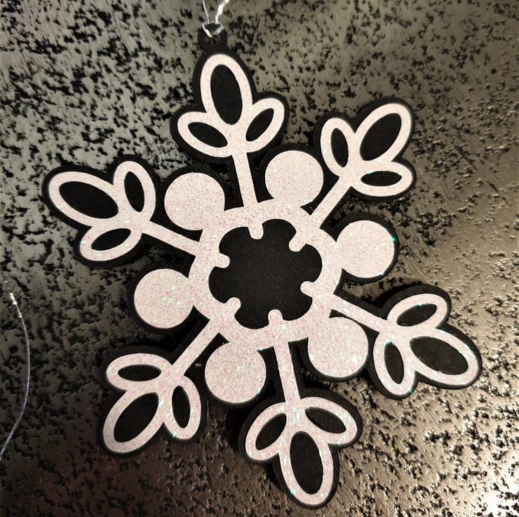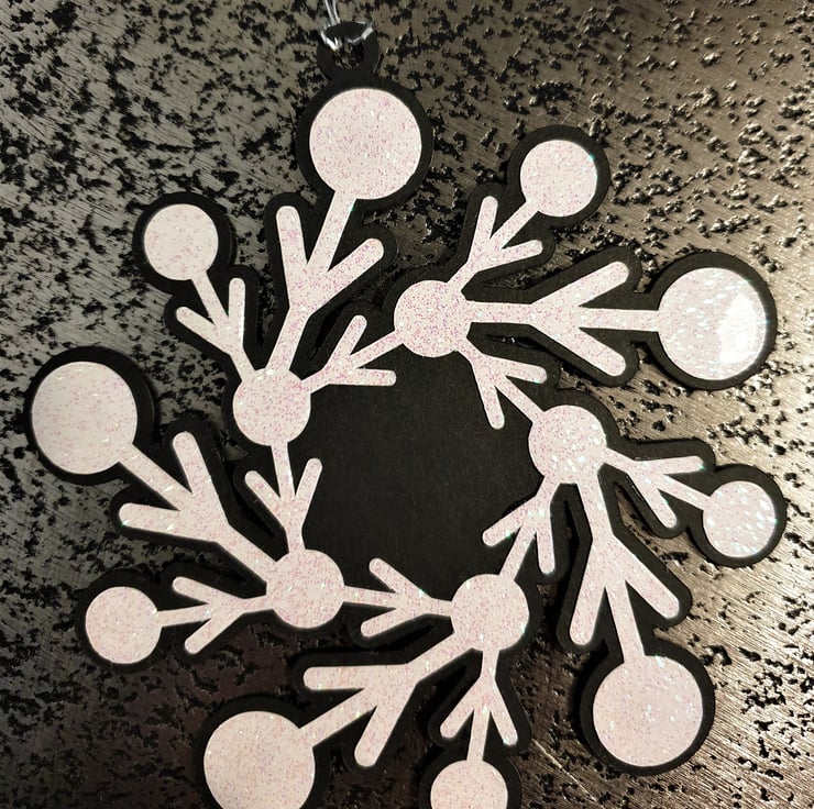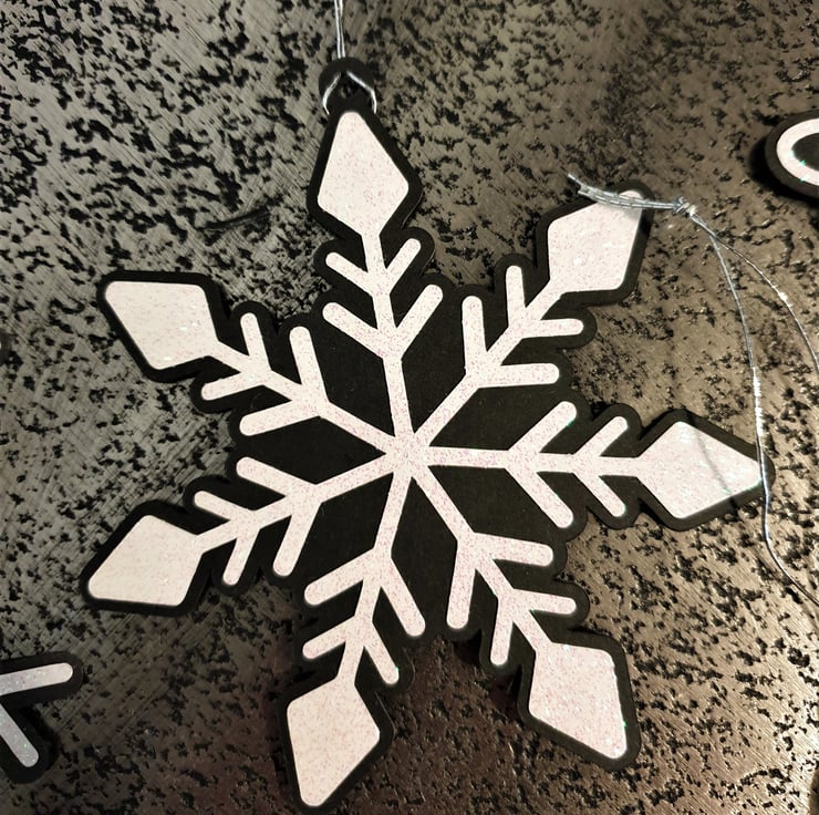 These are made from 2 layers of card and are ready to hang on your tree (or wherever you like) The white glitter effect will add a touch of festive sparkle.