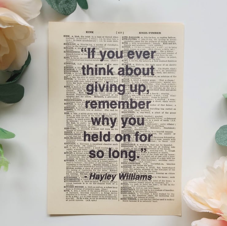 "If you ever think about giving up, remember why you held on for so long." - Hayley Williams