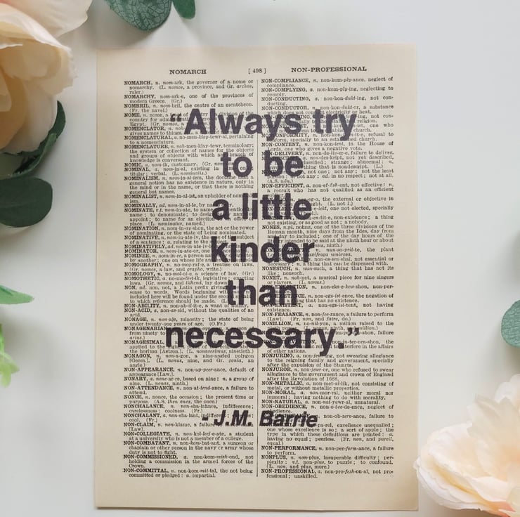 Combining inspiring/motivational quotes with vintage dictionaries. All quotes are printed onto genuine pages taken straight out of vintage English dictionaries to create a chic and inspiring product.