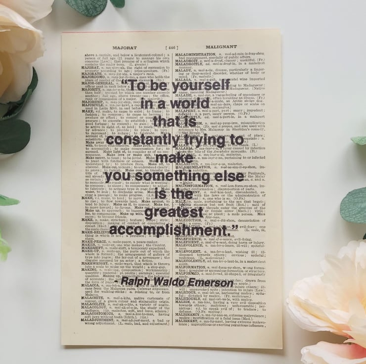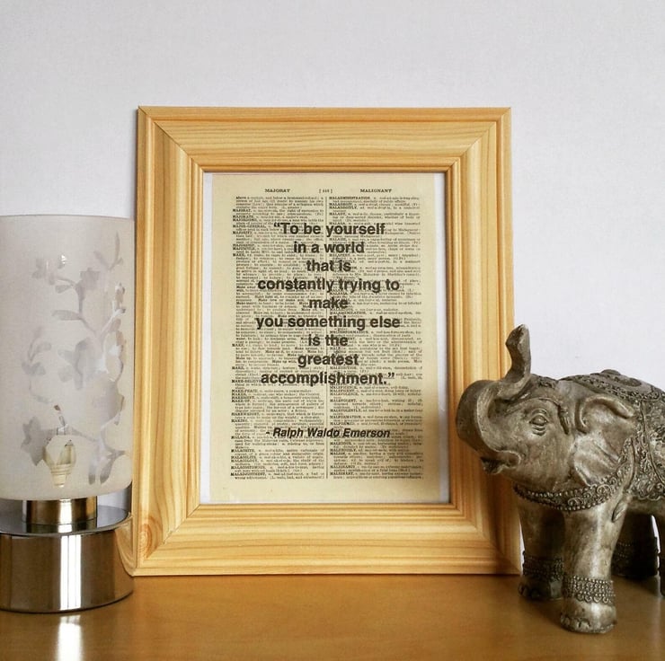 Each quote is printed onto a different page from the dictionary, (the dictionary text of the page you receive may or may not be the same as shown in the listing pictures), therefore each print is unique!