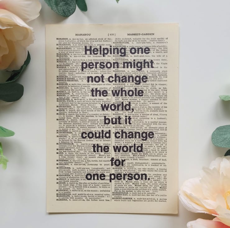 Combining inspiring/motivational quotes with vintage dictionaries. All quotes are printed onto genuine pages taken straight out of vintage English dictionaries to create a chic and inspiring product.