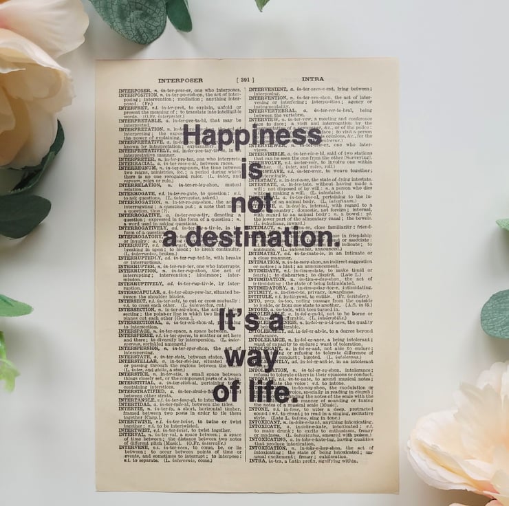 Unframed 1948 Dictionary Page Quote Print-Happiness Is a Way of Life- Print Only