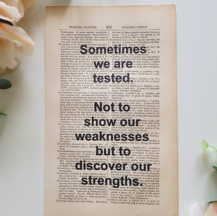 Combining inspiring/motivational quotes with vintage dictionaries. All quotes are printed onto genuine pages taken straight out of vintage English dictionaries to create a chic and inspiring product.