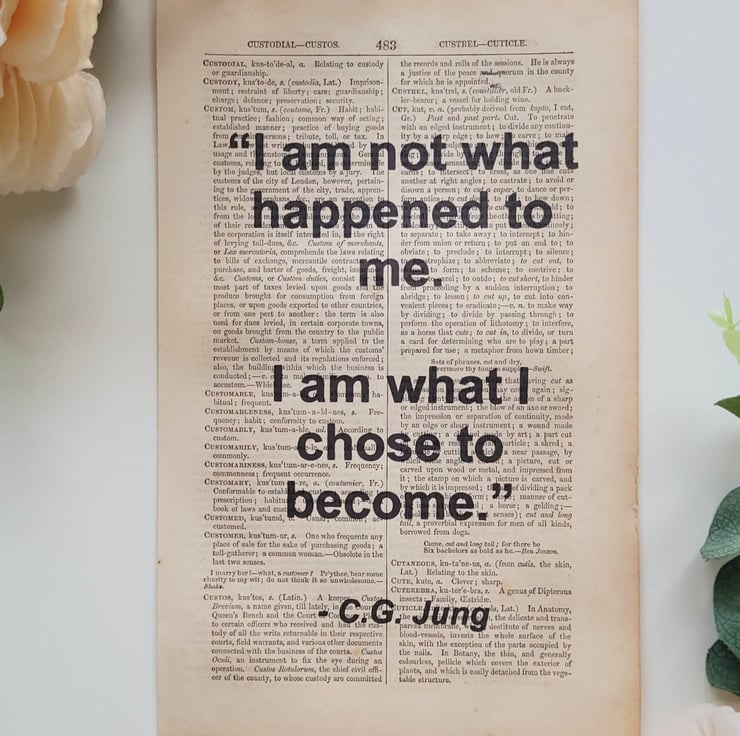 Combining inspiring/motivational quotes with vintage dictionaries. All quotes are printed onto genuine pages taken straight out of vintage English dictionaries to create a chic and inspiring product.