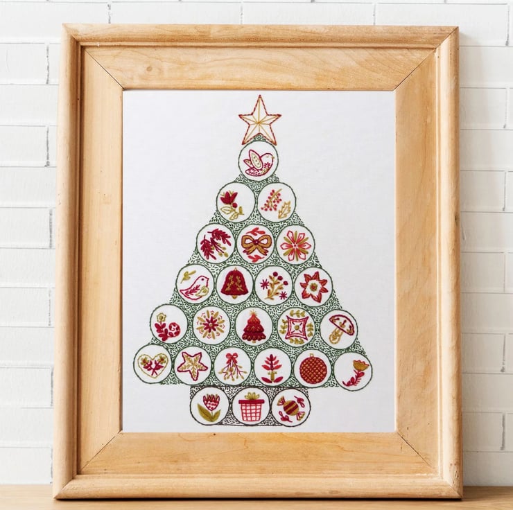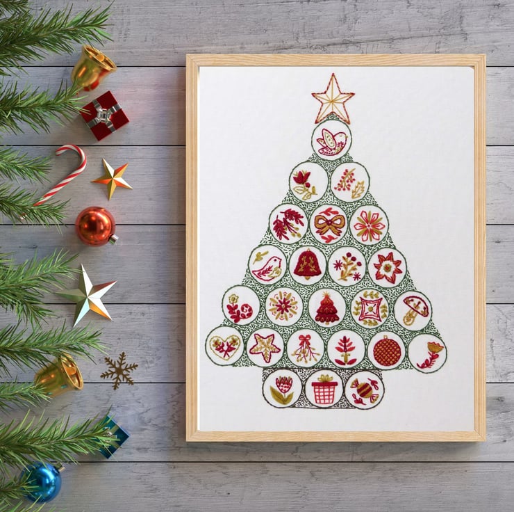 Embroidery PDF Pattern for the 'Folk Christmas Tree' with full colour photos and a step by step process.
