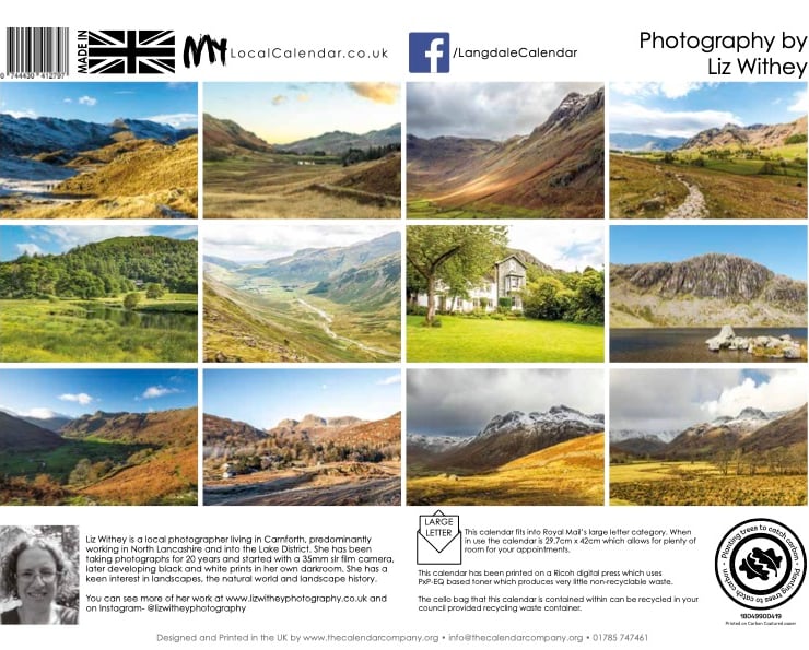 Stunning images of the Langdale valley in the Lake District National Park from Liz Withey Photography. The calendar reflects the seasons and captures a variety of views from around the Langdale Vallies.