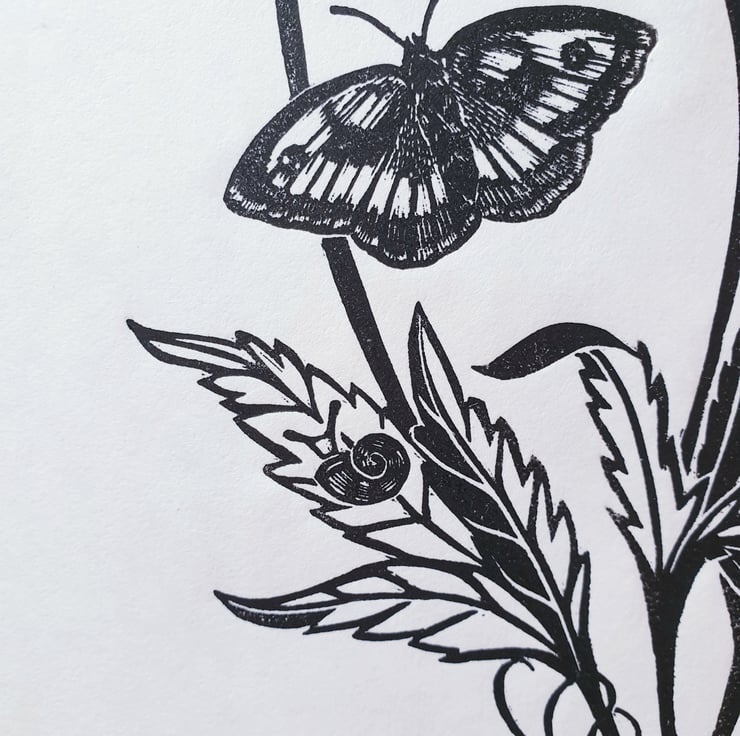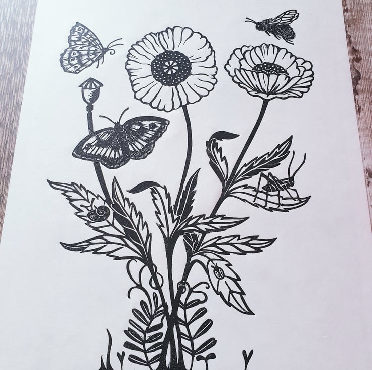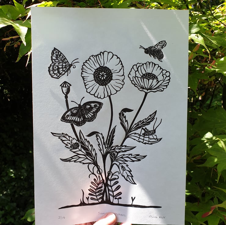 Original A4 size linocut print which has been hand carved and printed by me using black oil based ink on Japanese HoSho paper.