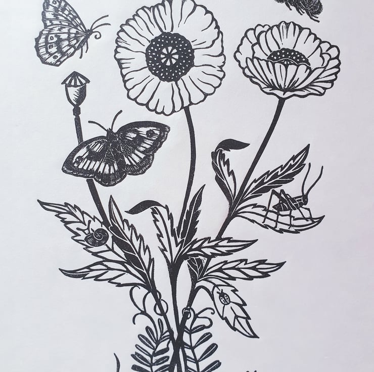 The artwork features a summer garden scene with poppies and it celebrates all the insects which help our wild spaces thrive.