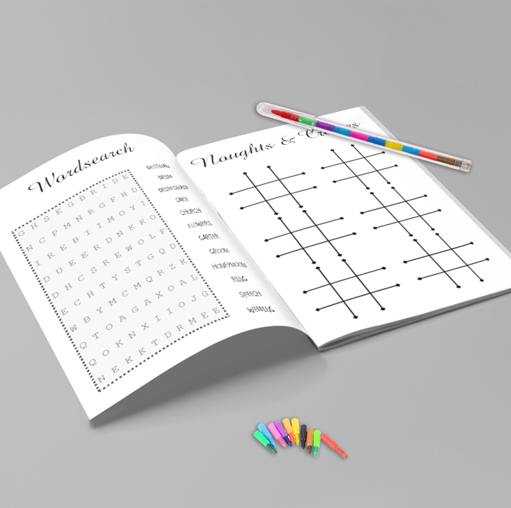 Our Personalised Children's Wedding Activity Pack, a fantastic addition to your wedding table, guaranteed to keep the young ones engaged all day long. Bid farewell to restless children and ensure a smooth, enjoyable day for everyone.