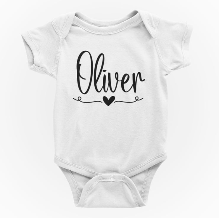 Personalised Shortsleeve Baby Grow -- Name With a loveheart