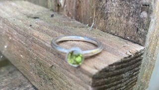 This ring is made from 2mm sterling silver wire with a bezel set 5mm peridot stone.