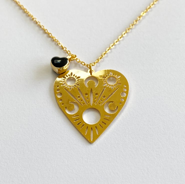 - 24ct gold-plated laser cut heart pendant, 30 x 28mm