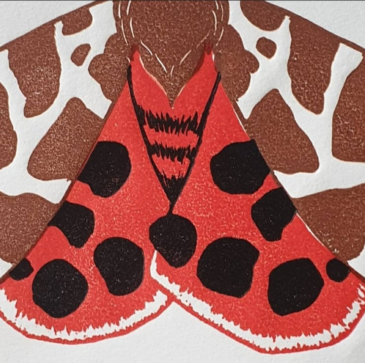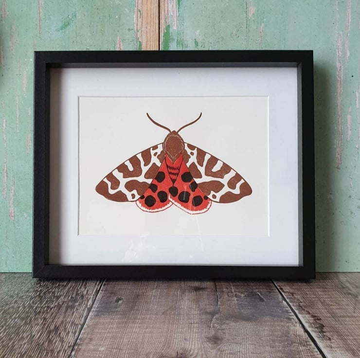 I enjoyed carving this colourful moth and lining up the lino blocks. I think it's a lovely colourful print and a wonderful addition to a nature lover's wall!