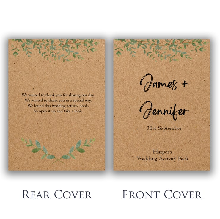 The front of each booklet can be customized with the child's name, the names of the bride & groom, and the wedding date.