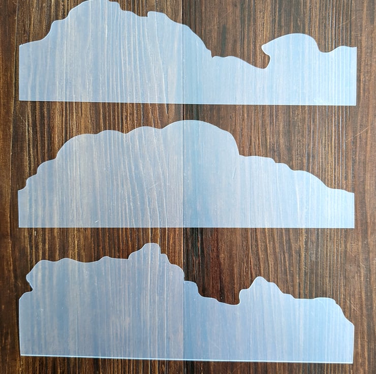 Three reusable Cloud Tops (includes positive and negative) Masks/stencils. Set of three.