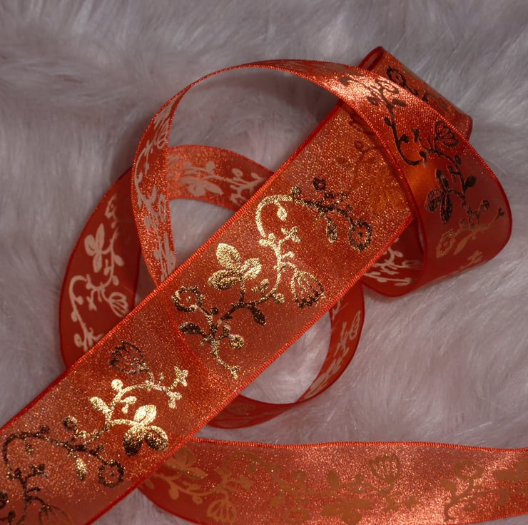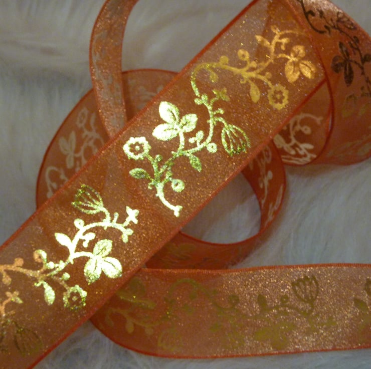 1 Metre Wire Edged Ribbon 38mm Sheer Orange & Gold