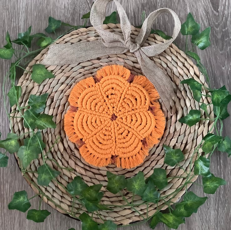 This intricate table mat/doily would make a lovely addition to an autumn display. It would look lovely with a vase of autumn flowers and foliage placed on top.